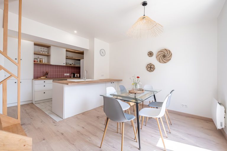 La maison d’origine était composée de trois chambres, d’un séjour/salle à manger, d’une cuisine rustique, d’un petit bureau, et d’un niveau en rez-de-jardin qui servait de cave.