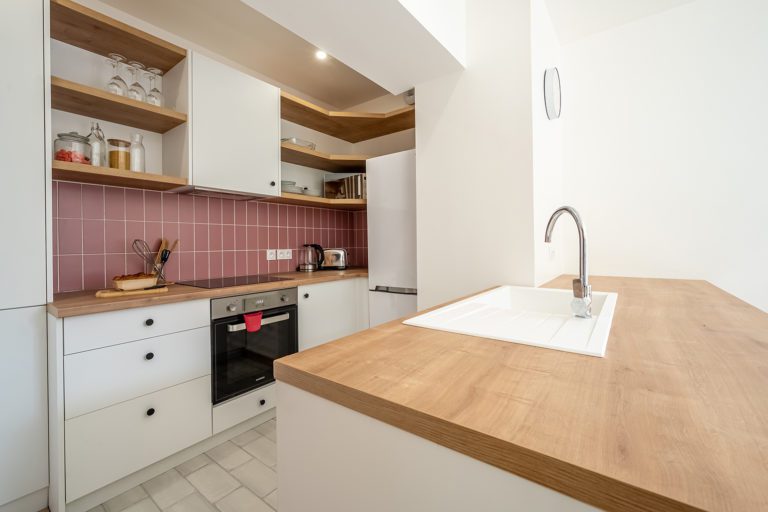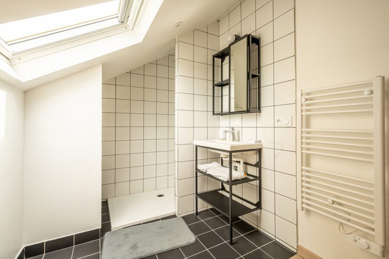 Nous avons entièrement remanié l’agencement intérieur en perçant des murs et en abattant les cloisons afin d’ouvrir l’espace et d’aménager au rez-de-chaussée un lieu de séjour spacieux, élégant, lumineux et fonctionnel. Le reste de la surface du rez-de-chaussée et des étages supérieurs a été découpé en cinq chambres confortables, chaque niveau bénéficiant d’une salle d’eau et d’un WC.