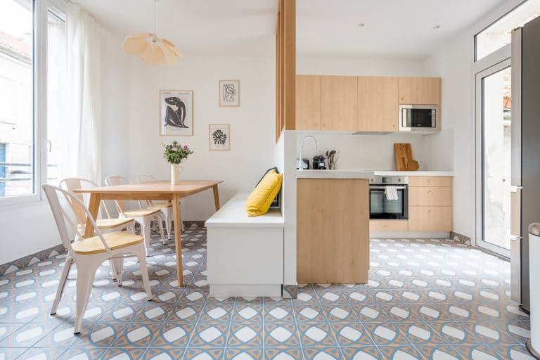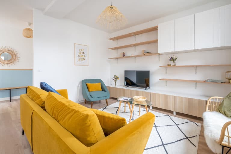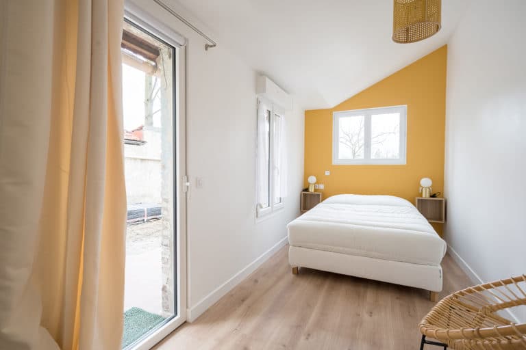 Une fois la fonctionnalité et la qualité des espaces assurées, une grande attention a été portée à la décoration intérieure afin de donner un cachet particulier à cette maison, qui la distingue des constructions standard. Des touches de bleu pastel, d’ocre jaune et des éléments en bois ont été apposés pour apporter de la chaleur aux espaces communs et y créer une atmosphère conviviale. Chaque chambre a reçu une décoration particulière pour que chaque locataire puisse trouver celle qui lui correspond.