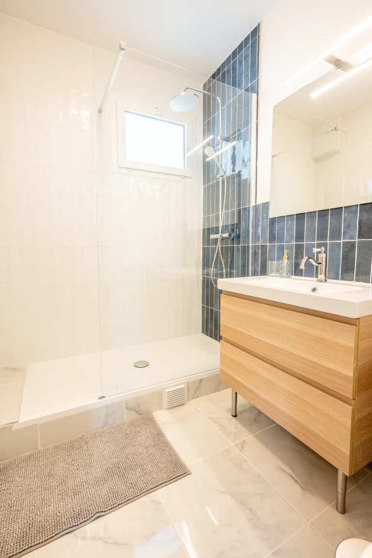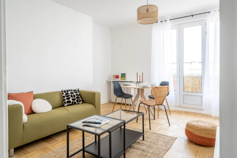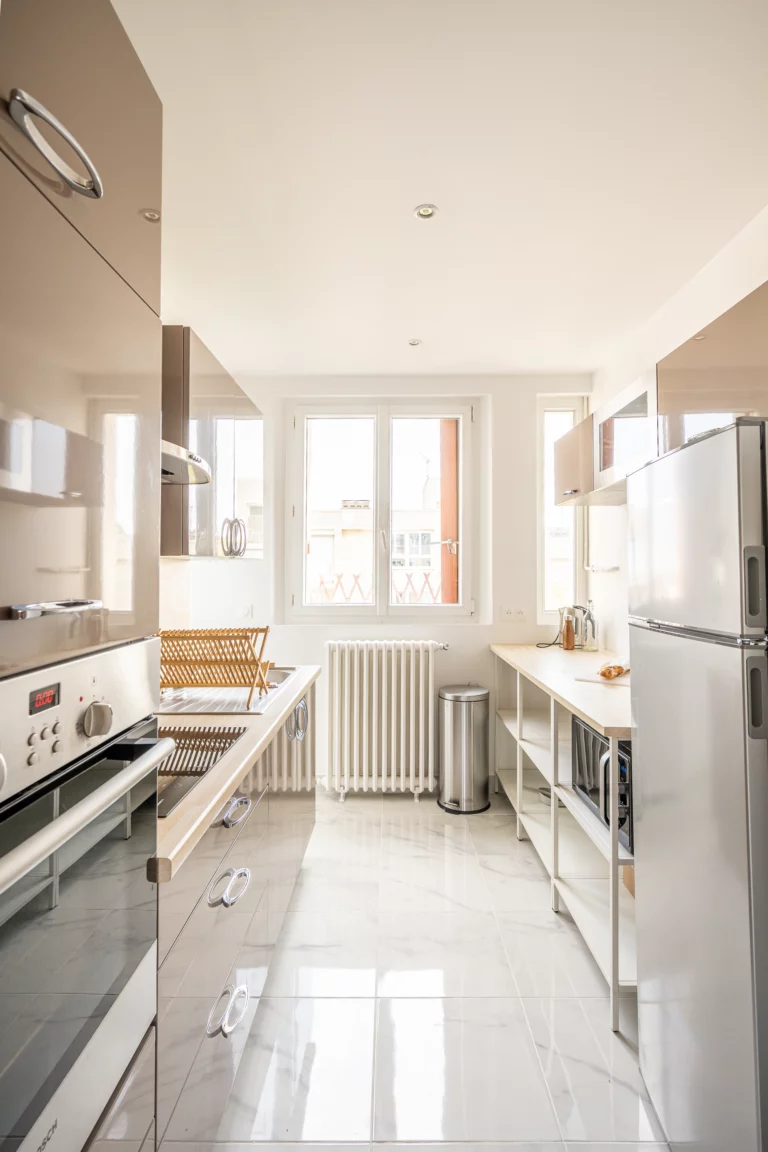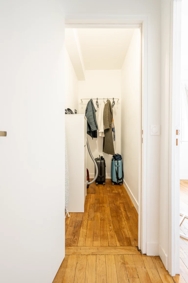 Tout l’art de la rénovation consiste à savoir identifier les éléments à conserver pour donner au futur logement le cachet particulier qui le distinguera d’un logement neuf. Le point fort de ce bien, hormis sa localisation située à deux pas de la gare, réside dans la qualité du parquet existant et les volumes des pièces. Nous avons donc optimisé l’agencement comme à notre habitude en cherchant à conserver et à mettre en valeur ces qualités, tout en remaniant isolation, chauffage, plomberie et électricité pour remettre l’appartement aux normes en vigueur.