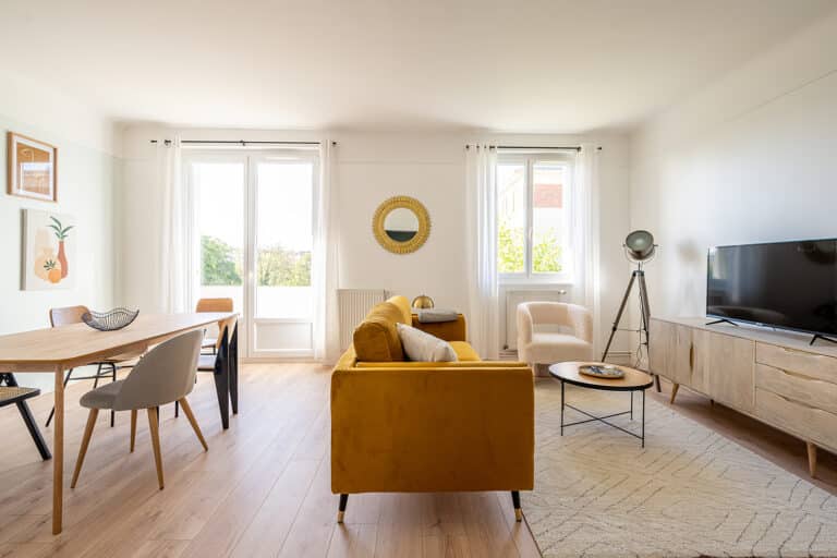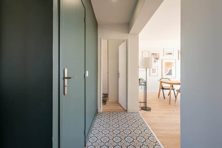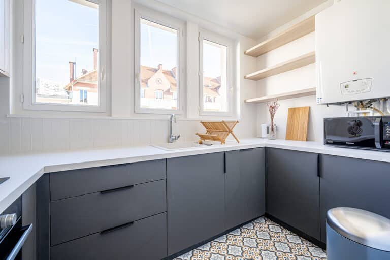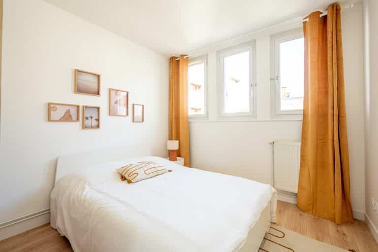 En termes de rénovation énergétique, nous avons transformé une passoire thermique en logement aussi performant que les constructions neuves. Pour ce faire, nous avons ajouté une isolation thermique sur toute la périphérie de l’appartement, changé les fenêtres et remplacé le système de chauffage, garantissant un confort et une diminution substantielle de la consommation d’énergie et des dépenses associées.