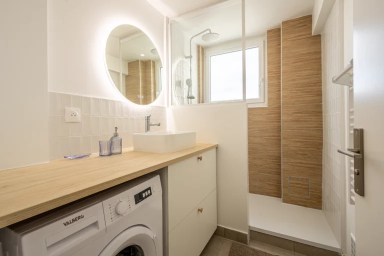 D’autre part, l’appartement (totalement dans son jus et inhabitable) nécessitait une maîtrise totale du chantier pour obtenir un résultat rapide, de qualité et dans un budget maîtrisé. Nos efforts sur la rénovation énergétique, notamment par l’isolation et le changement des fenêtres en double vitrage, ont été merveilleusement récompensés par un DPE C : un plus pour l’environnement, le porte-monnaie et le confort de nos locataires !