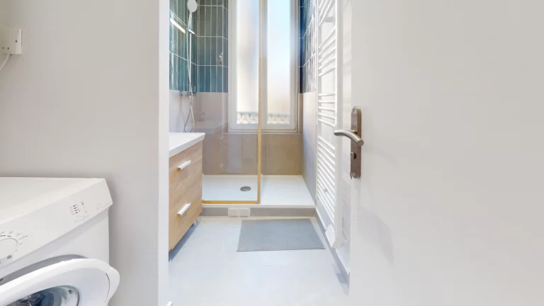 Située au 1er et dernier étage d’un petit bâtiment en copropriété, de nombreuses transformations étaient nécessaires pour que cette passoire thermique, au plan biscornu et avec sanibroyeur, devienne une colocation confortable et répondant aux normes actuelles.