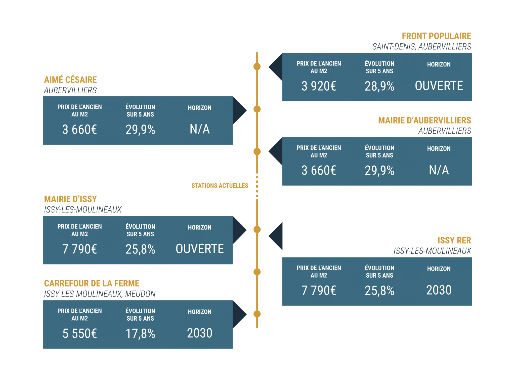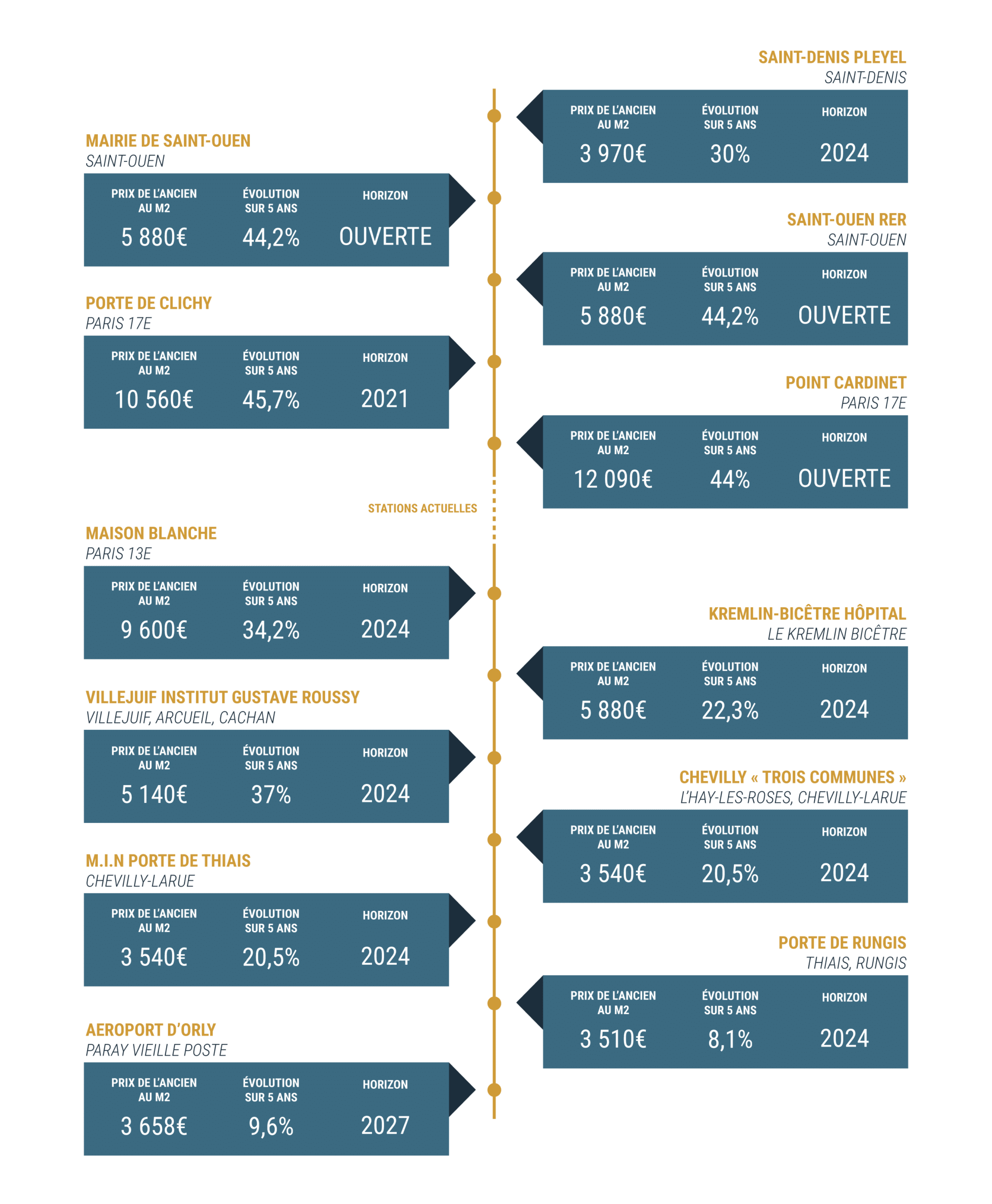 Toutes choses égales par ailleurs, on peut spéculer sur le fait que l’ouverture des futures stations de la ligne 14 puisse générer un effet de traction relativement similaire pour les villes concernées ! Il y a donc encore de belles opportunités à saisir !